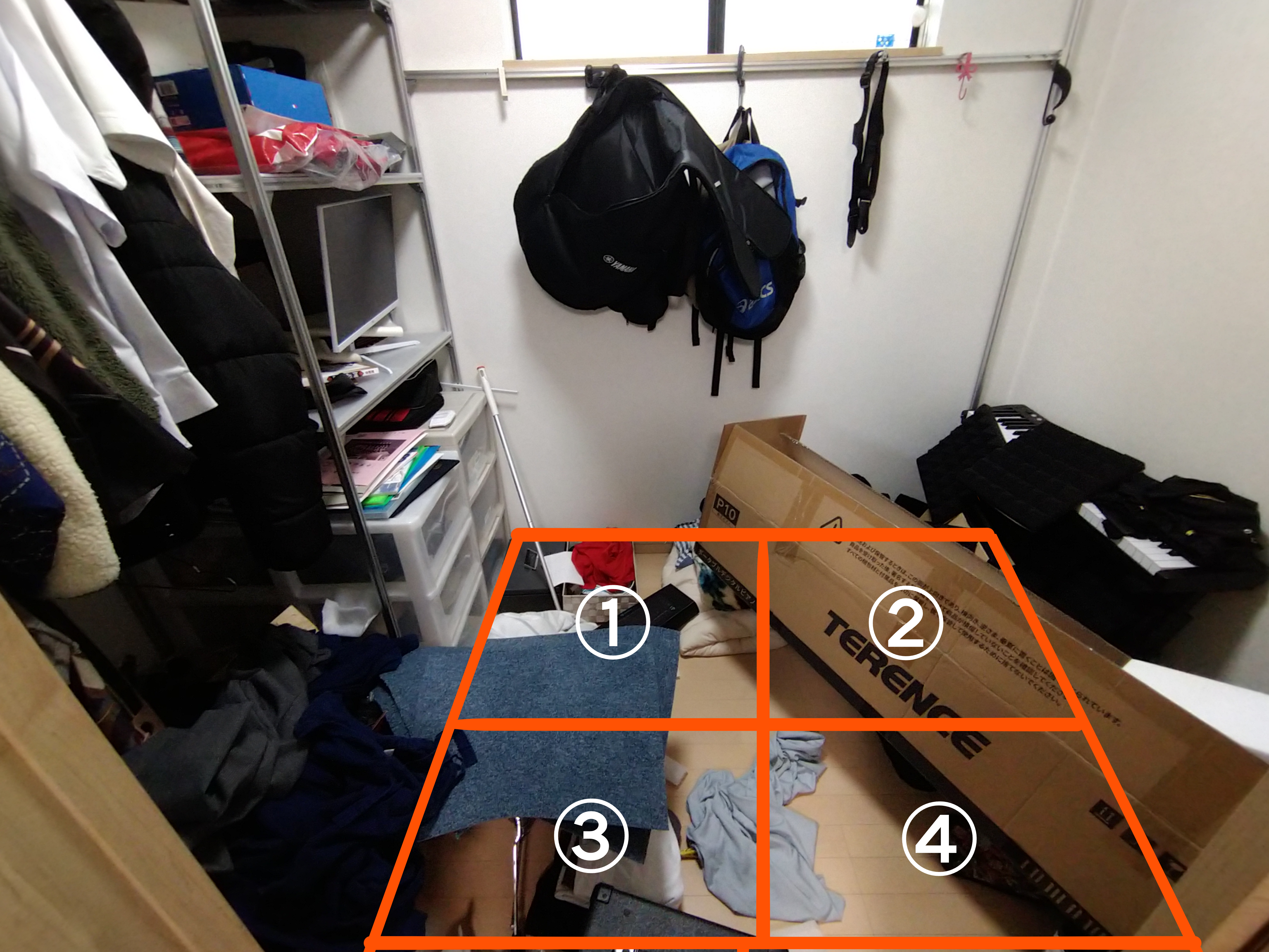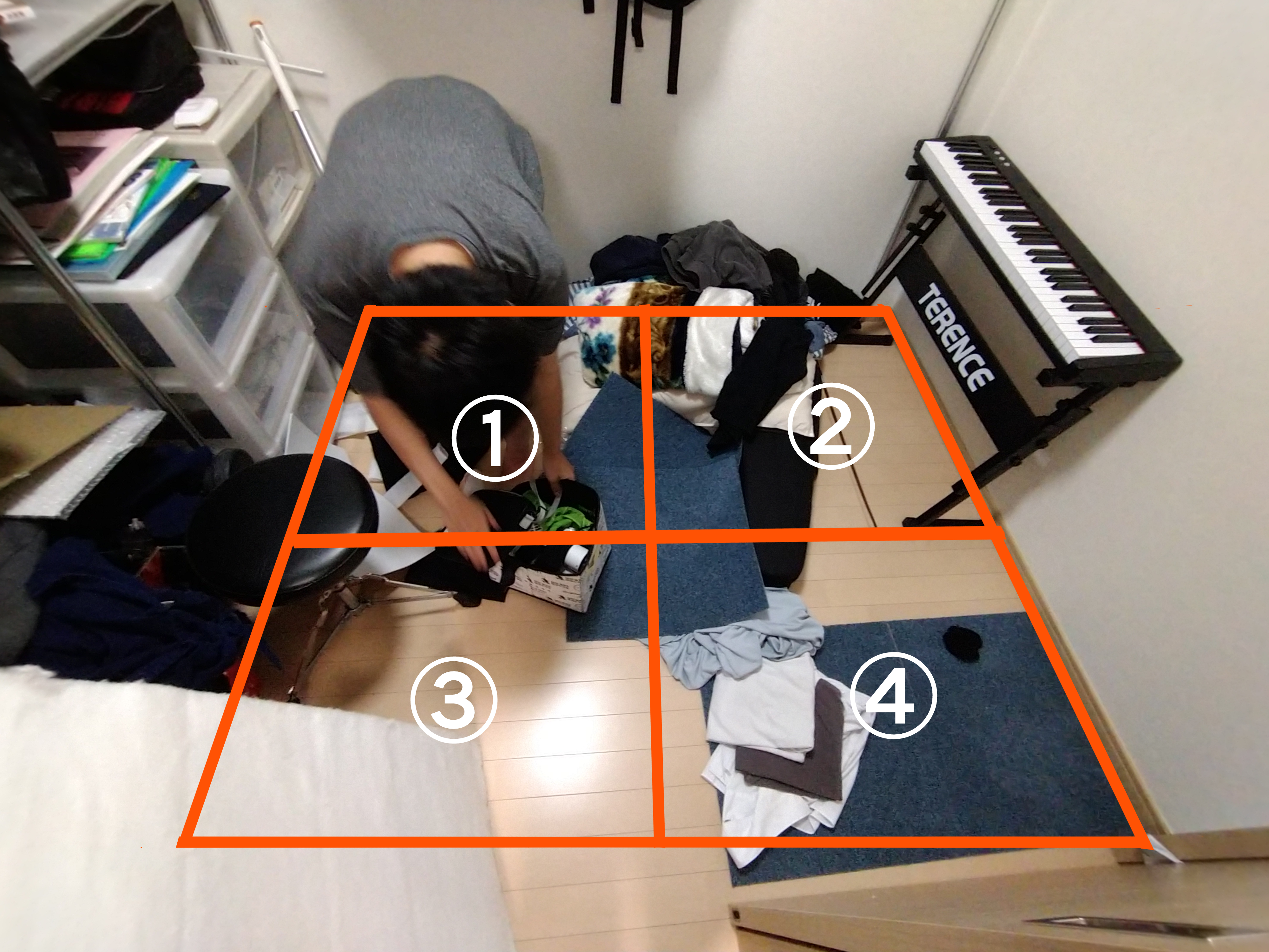 そんなときは写真のように、部屋や収納ボックスなどを一つの塊として見ずに、分割して1か所ずつ攻めていきましょう!