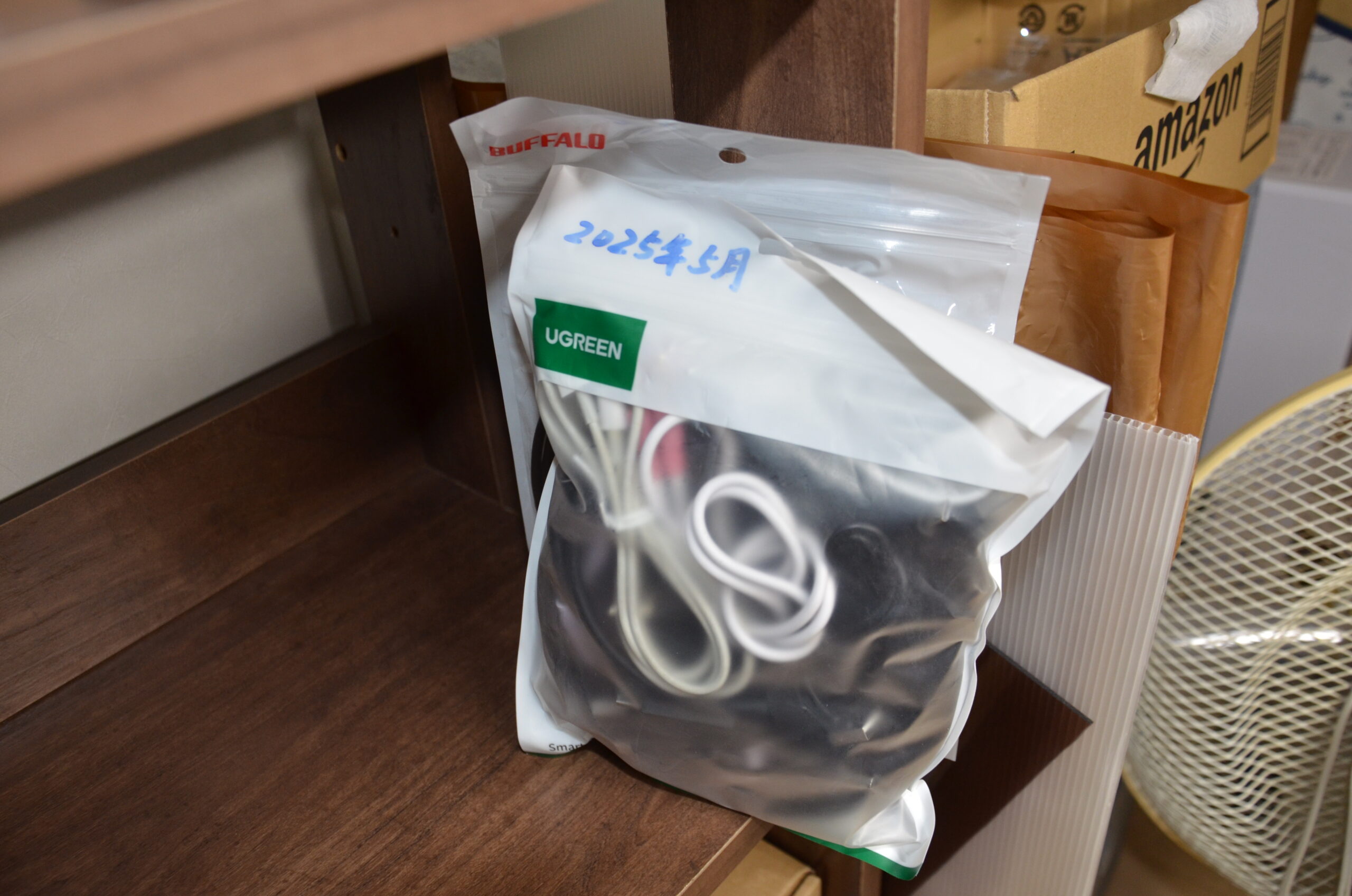 前向き社畜の場合はガジェットを購入したときに付属しているダブってしまったコード類が捨てられず、袋に入れて屋根裏部屋に保管しています。