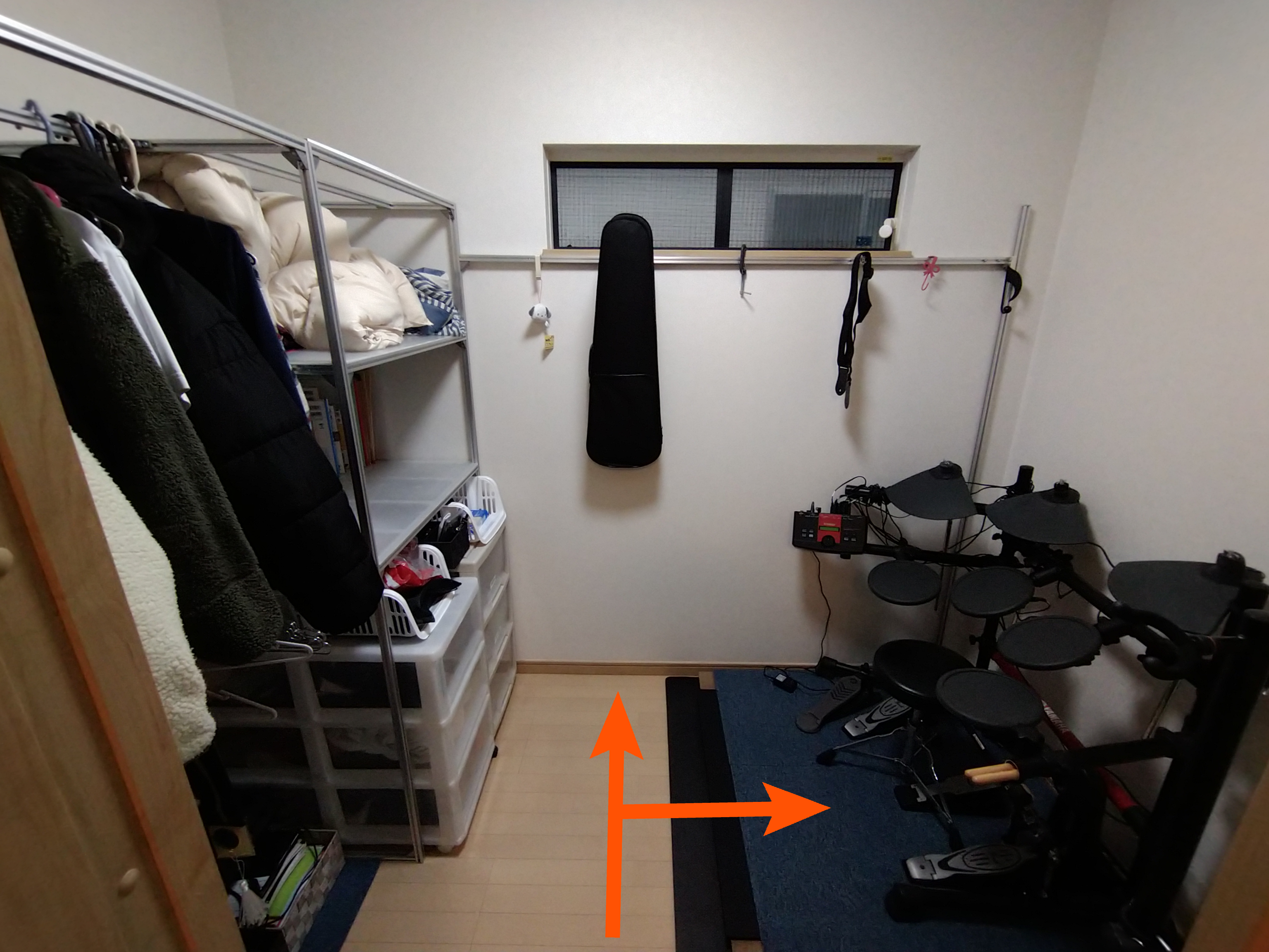 入り口にあったギタースタンドは、電子ドラムが置いてあるウォークインクローゼットに移動したので、ロボット掃除機の掃除動線や生活動線が確保されました。