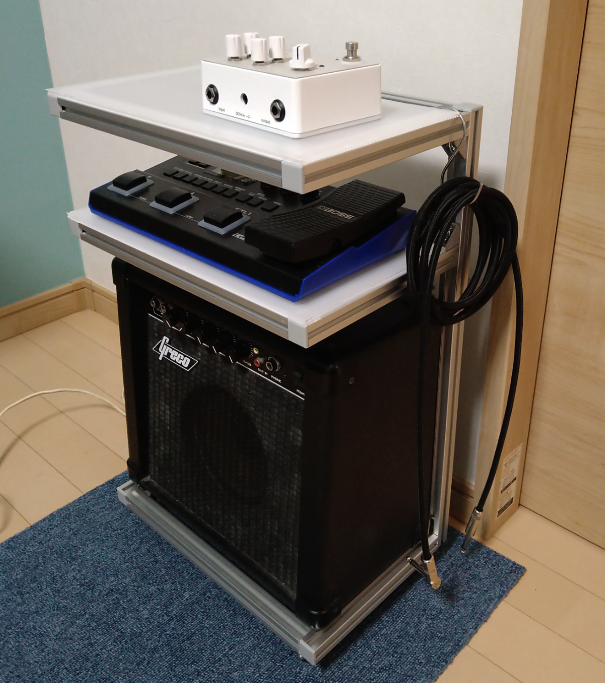 右側にエフェクターが置いてあるけど、アンプラックを作る前の写真だから紛らわしいかも。