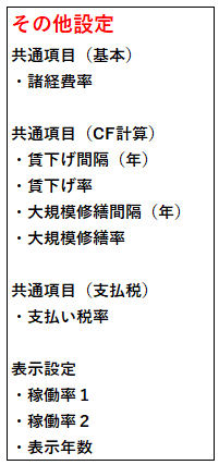 共通項目(CF計算)賃下げ間隔・賃下げ率・大規模修繕間隔・大規模修繕率