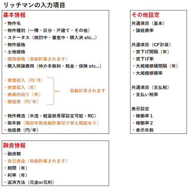 リッチマンに諸経費を入力したら、次の項目は自動で計算されるので入力は不要ですので飛ばしていきます。