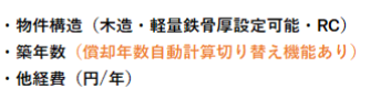 物件構造は検討している物件のポータルサイトなどに記載されているのでそのまま入力します。