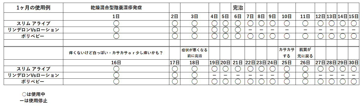 ポリベビーだけの期間に以降したときに前向き社畜の場合、1~2週間後に陰嚢が白っぽくなって皮膚が突っ張る、痒くないけどカサカサしてきたなどの段階で一度最初の段階のリンデロンVsローションを使用しています。