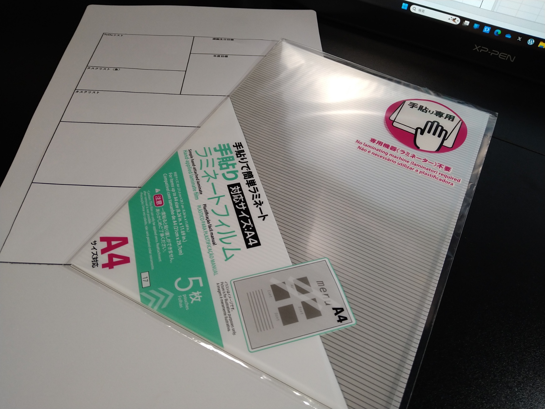 A4ラミネーター不用フィルム2枚使用して貼り付け