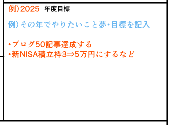 誕生日目標が人生の転換や大きな課題に対して、年度目標はその1年で達成したいこと、やるべきことをばんばん書き込んでいきます。