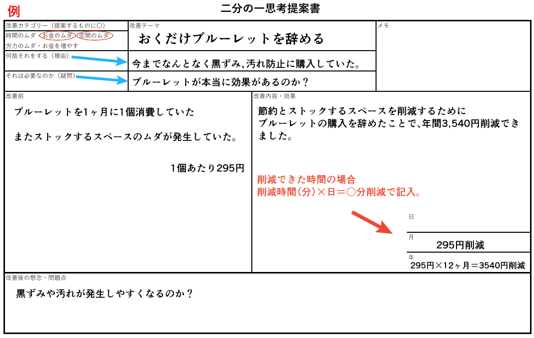 勤務している会社では二分の一の改善ができたら、今度は四分の一まで改善しようといった考え方です。