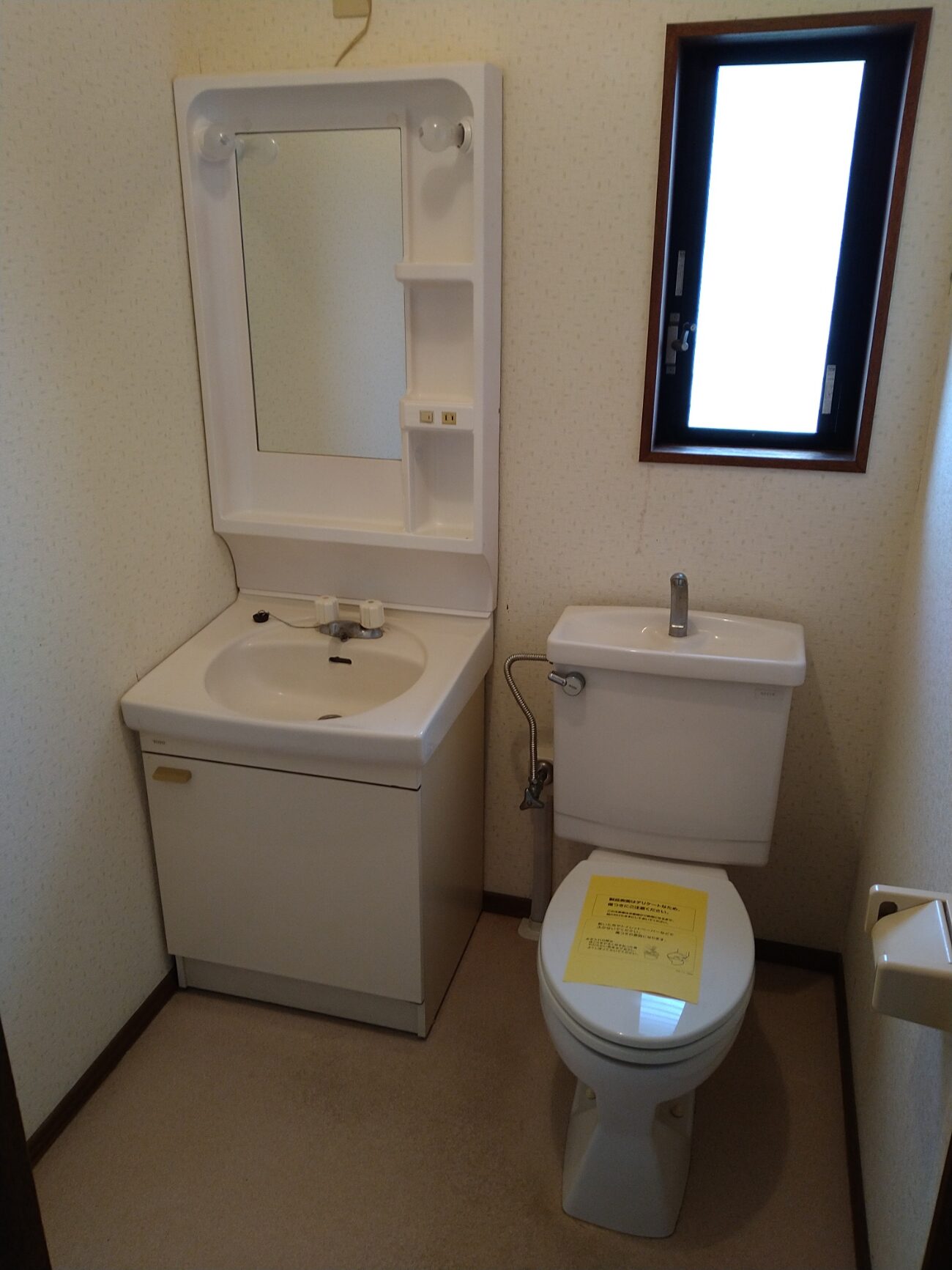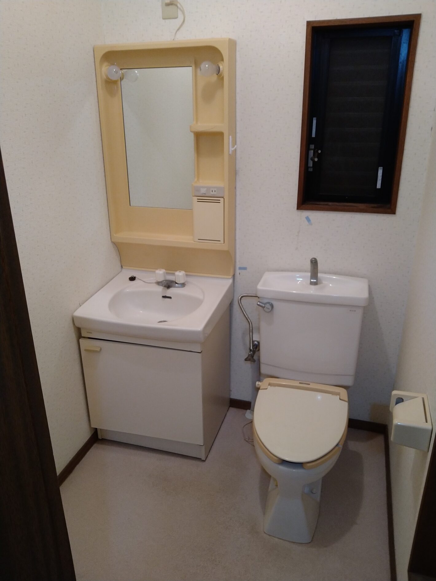 黄ばんだ化粧棚が白く変わることで全体の雰囲気も明るくなって古臭い不快感がなくなりましたね!
