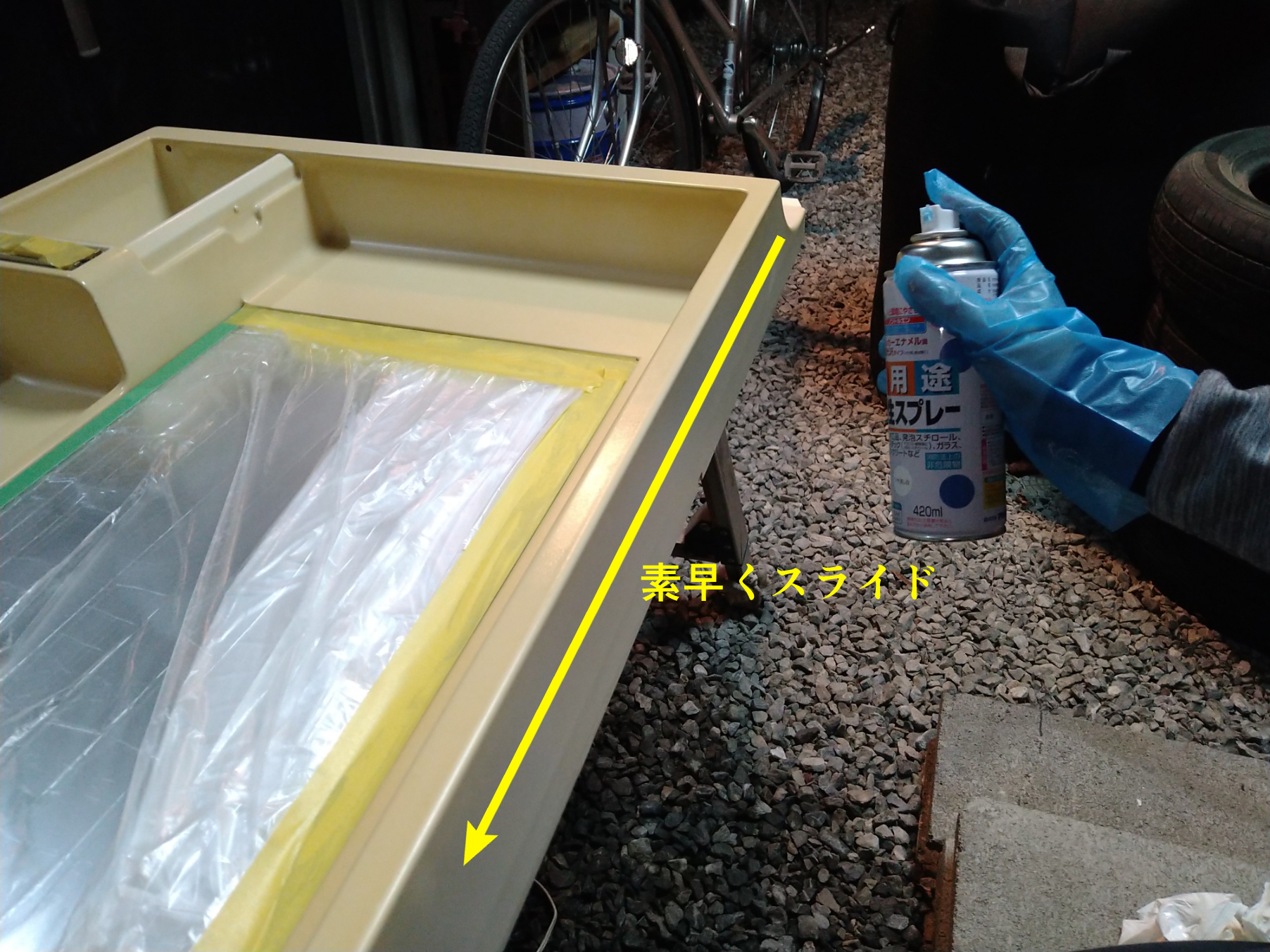 今回所有しているアパートの原状回復が発生し、全ての備品を原状回復することが厳しい中で予算3千円以内の塗装で蘇らせました。